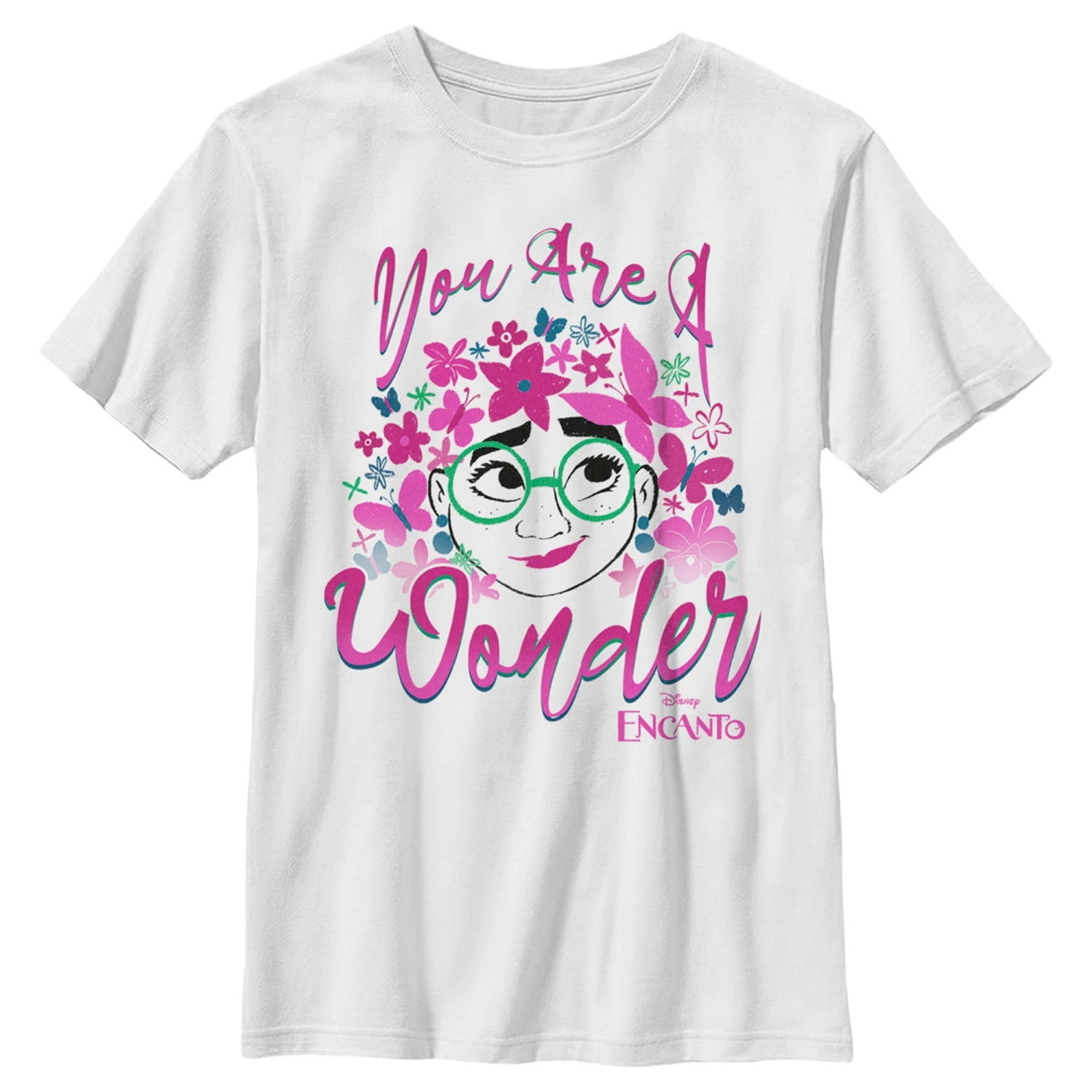 Join the Madrigal family for some magical and musical fun in the mountains of Colombia in Disney’s new hit film Encanto! This officially licensed Boys’ Mirabel You are a Wonder Tee features an adorable depiction of Mirabel Madrigal framed by pretty pink flowers, butterflies, and the phrase “You Are A Wonder.” Grab this new tee today and show your love for your new favorite Disney movie!