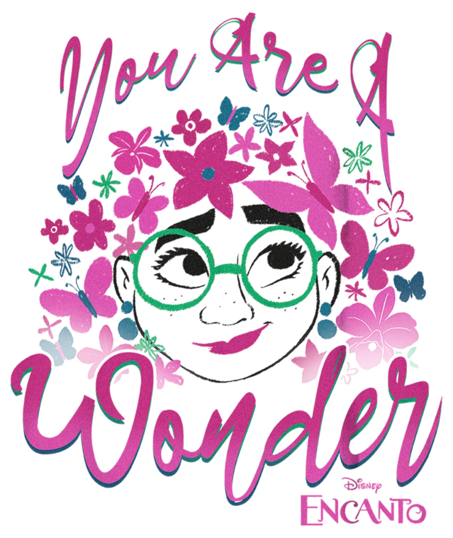 - This design features your favorite character Mirabel Madrigal framed by pretty pink flowers, butterflies, and “You Are A Wonder”