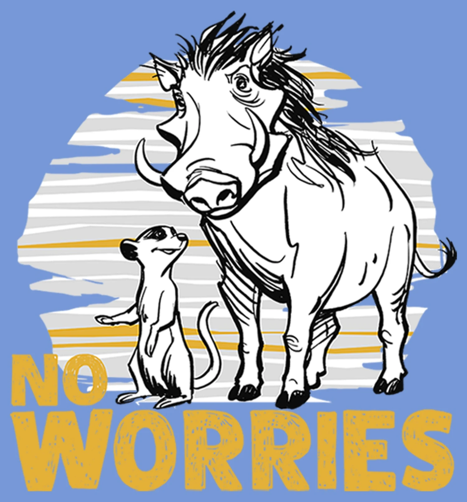 Hakuna Matata “ain’t no passing craze,” and neither is this officially licensed Disney The Lion King No Worries Besties Tee! This Boys’ design features a sketch of Timon and Pumbaa out on the Pride Lands. Have no worries for the rest of your days, and rock your Lion King pride with this graphic tee!