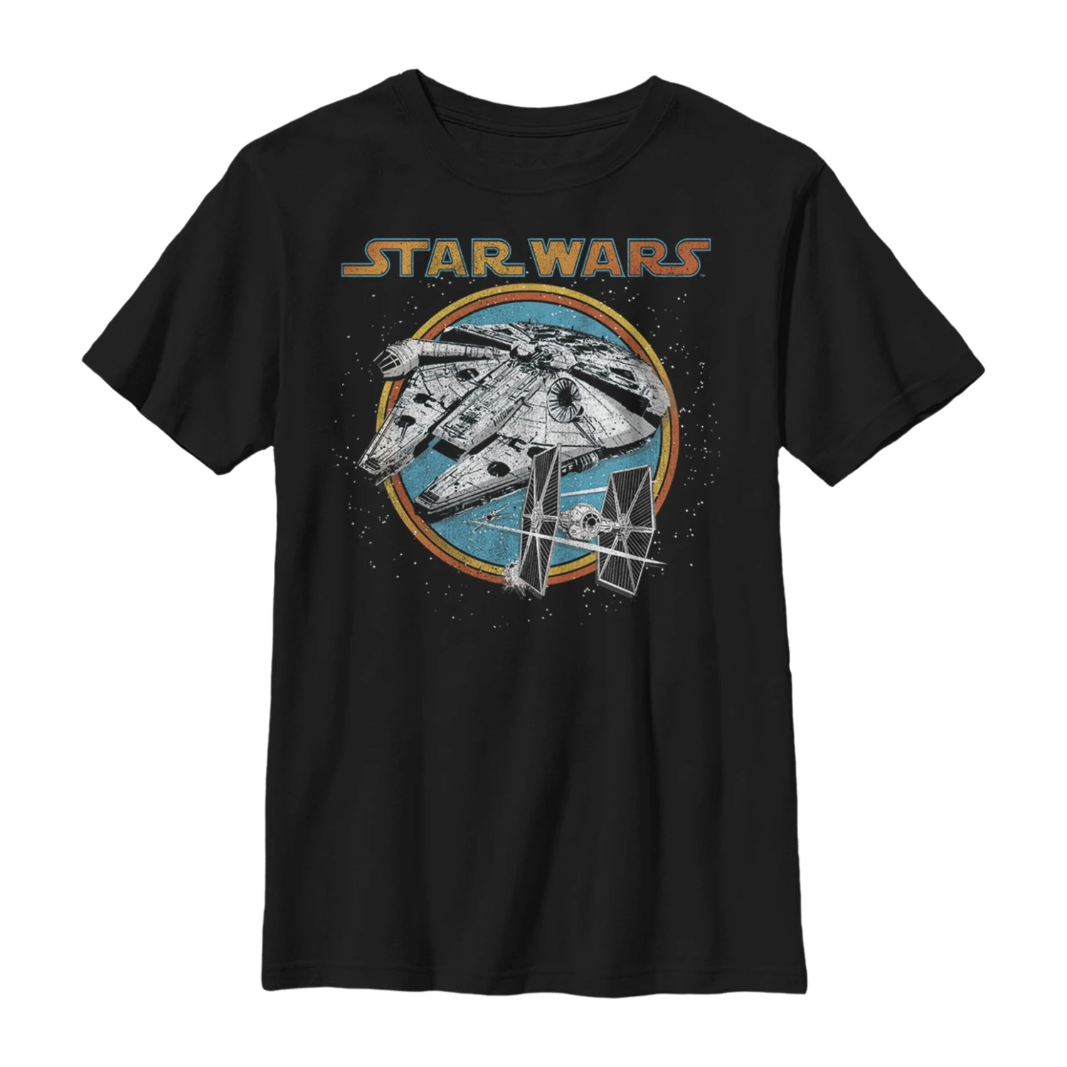 - Strut your stuff with this stylish new Boy’s Tee Shirt that is perfect for every occasion! Featuring your favorite characters like Millennium Falcon.