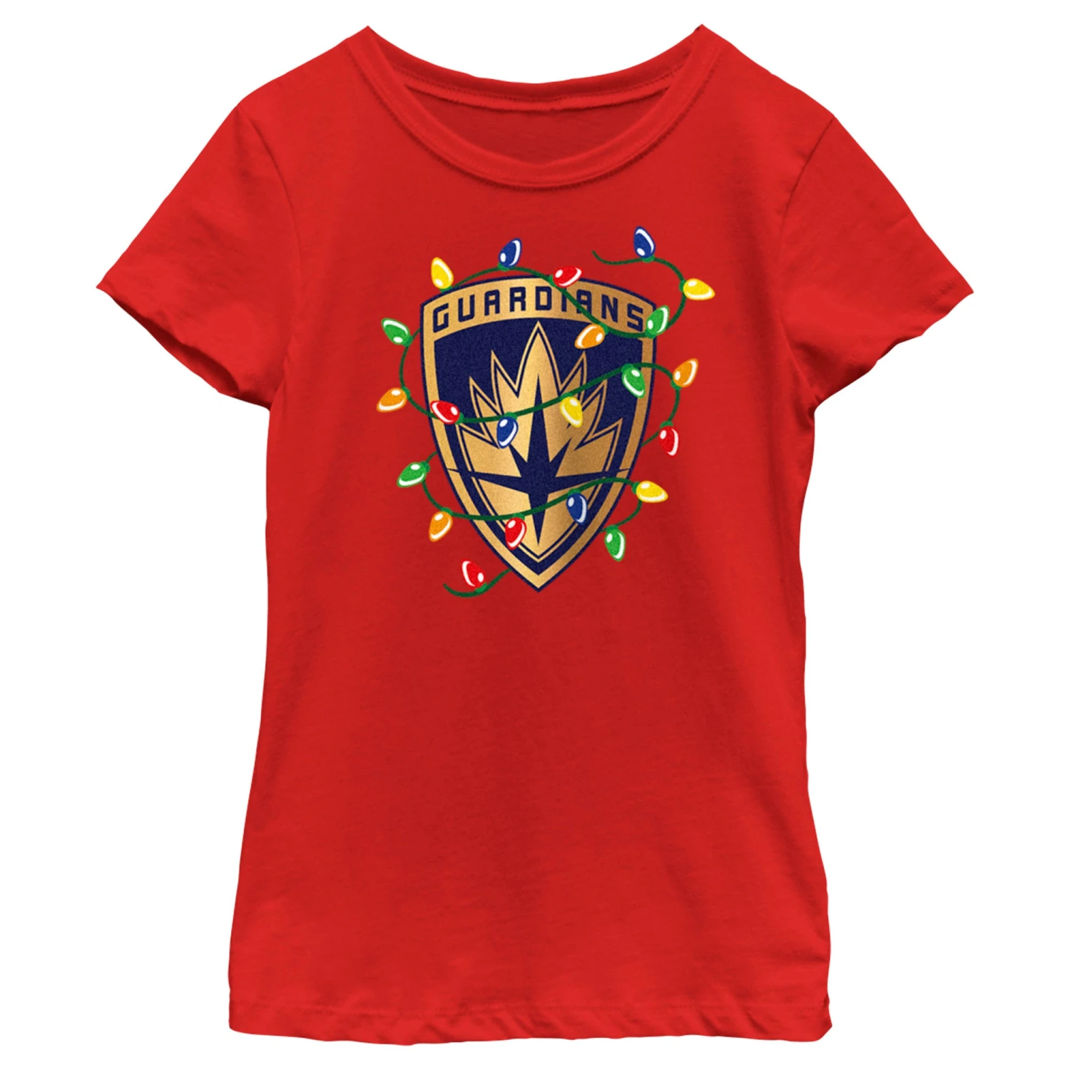 - Strut your stuff with this stylish new Christmas Girls’ T-Shirt that is perfect for the holidays! Featuring the Guardians of the Galaxy shield logo tangled in Christmas lights across the front.