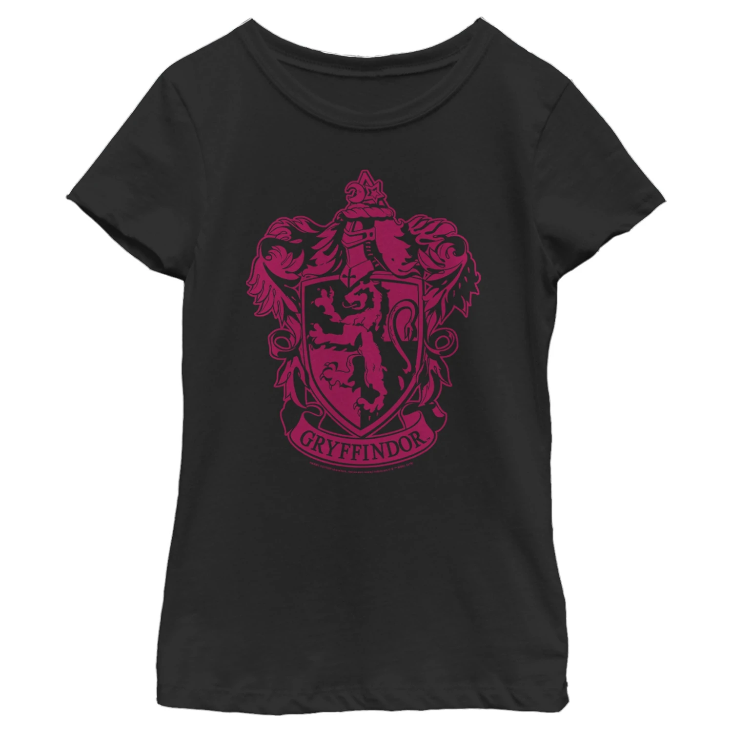 Unlock magical secrets hiding in the closet under the stairs with this officially licensed Harry Potter Gryffindor House Crest Girls’ Tee! Head to Hogwarts with your favorite witches and wizards like Harry, Hagrid, Dumbledore, Hermione Granger, Ron Weasley, and Neville Longbottom and learn to defeat He Who Shall Not Be Named! And, just remember, the spell is Wing-gar-dium Levi-o-sa and NOT Wingardium Leviosa!