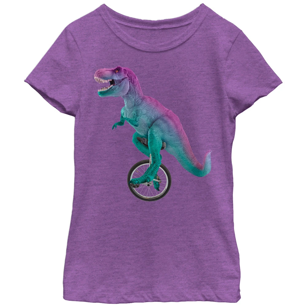 The Lost Gods Unicycle Dinosaur Purple T-Shirt is the coolest shirt to hit the scene since the Cretaceous Period! A bicycle just doesn’t cut it for a Tyrannosaurus rex with tiny arms which is why the T. rex printed on the front of this funny purple dinosaur shirt is riding a unicycle instead. It’s dino-mite!