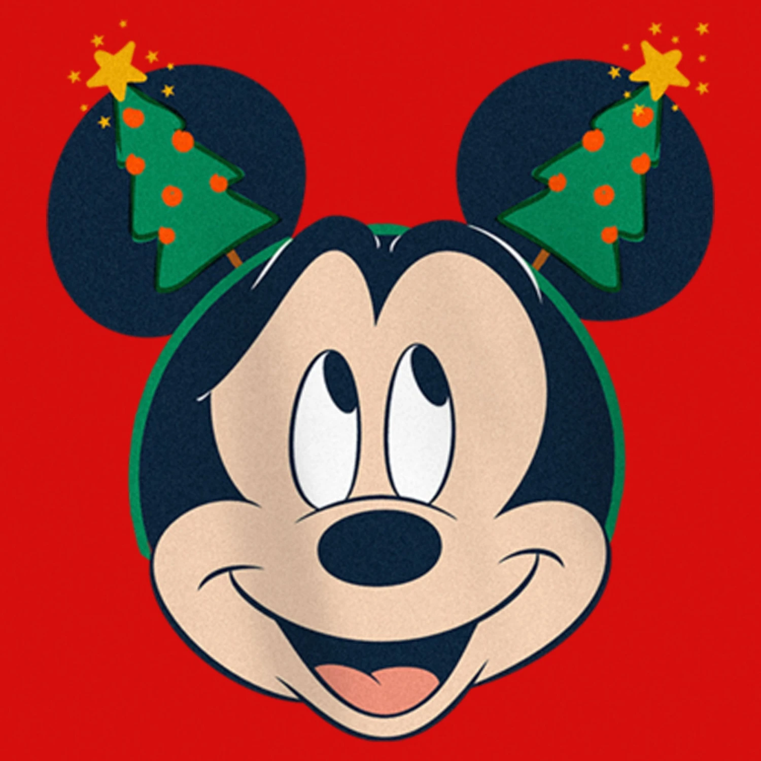 - Strut your stuff with this stylish new Christmas girls’ t-shirt that is perfect for the holiday season! Featuring Mickey smiling and wearing a headband with two Christmas trees across the front.