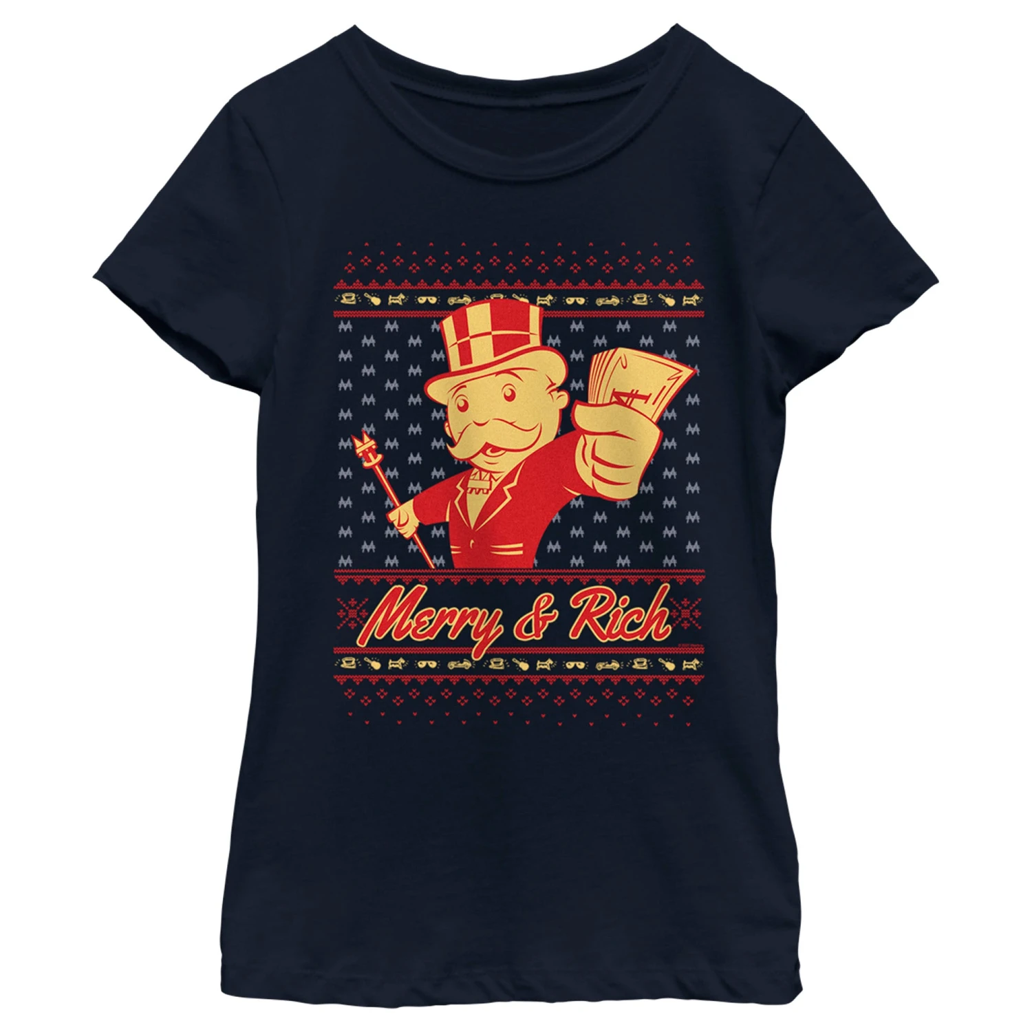 - Strut your stuff with this stylish new Christmas Girl’s Tee Shirt that is perfect for every occasion! Featuring your favorite characters like Monopoly Man.