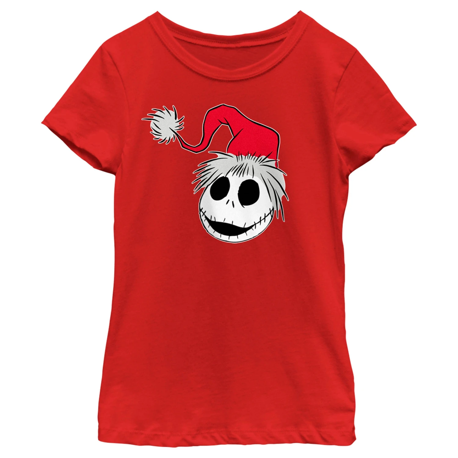 - Strut your stuff with this stylish new girls’ t-shirt that is perfect for the holidays! Featuring Jack Skellington smiling big in his adorable Santa hat.
