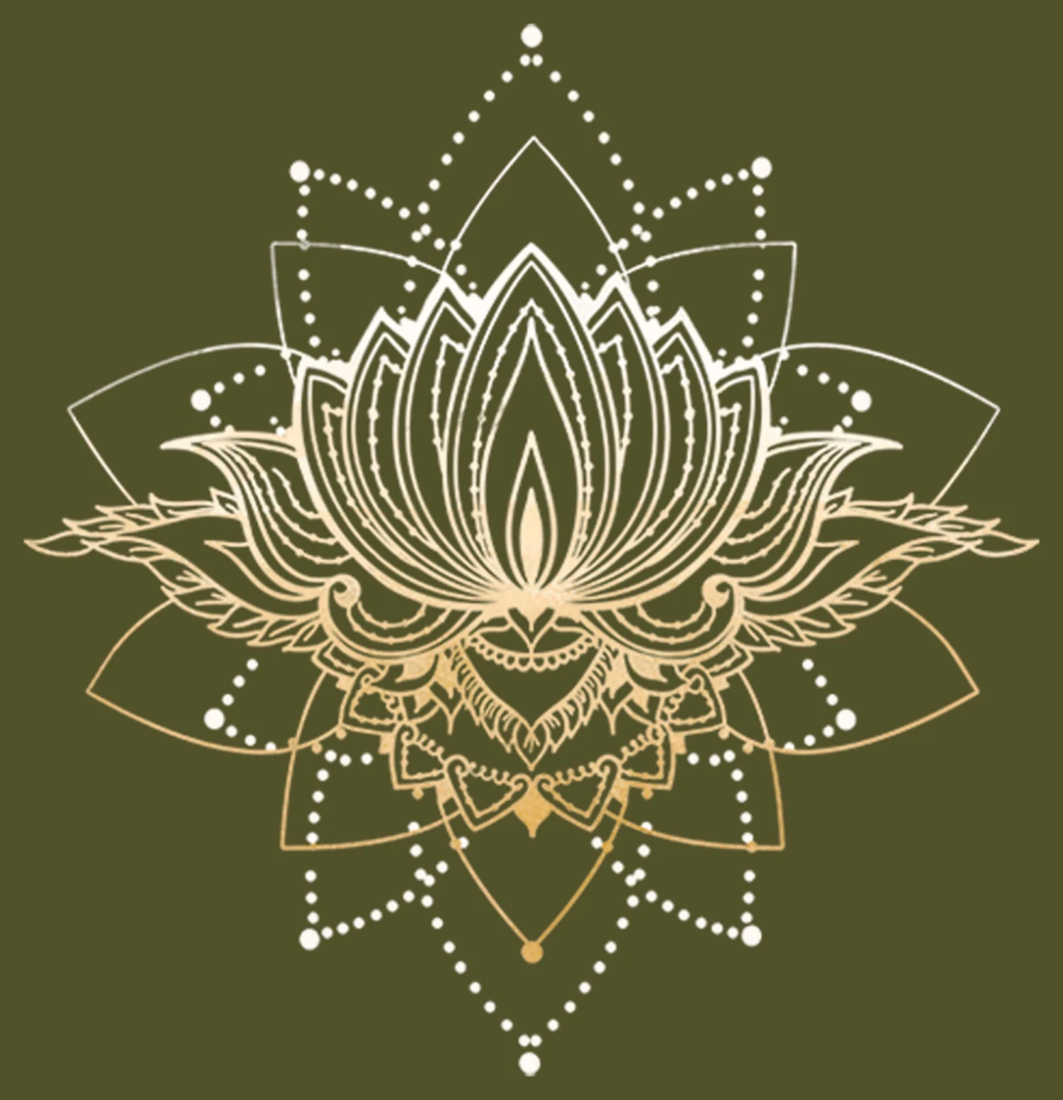 Take your everyday style to the next level with this lovely new Juniors’ Gold Lotus Racerback Tank Top from Lost Gods! This pretty, spiritual military green tank features a gilded lotus flower adorned across the front with white-dotted petals in the background. Grab this new graphic military green tank top today and make everything from workouts to running errands, or even just lounging around the house a little extra chic!
