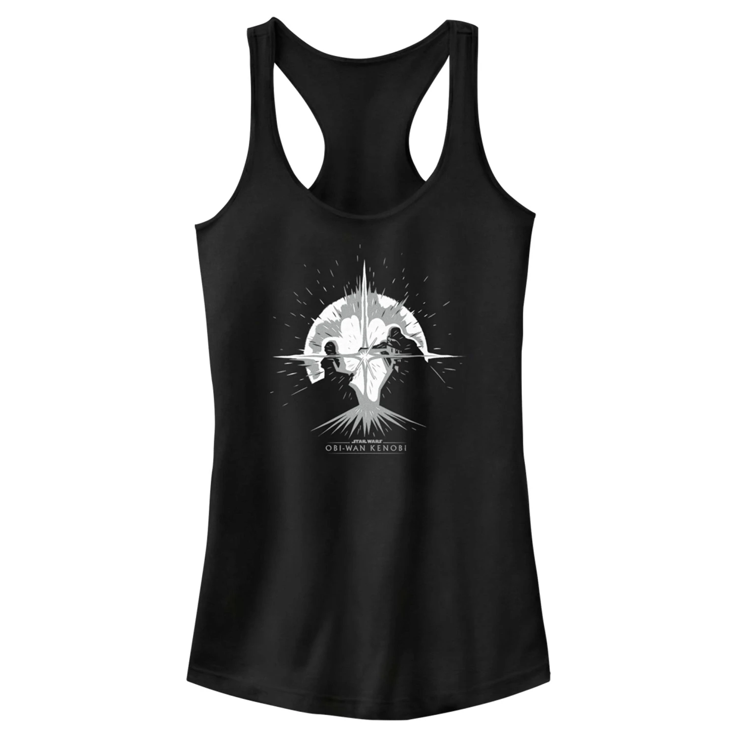 - Strut your stuff with this stylish new Juniors’ Graphic Racerback Tank that is perfect for every occasion! Featuring an explosive Lightsaber duel between Darth Vader and Obi-Wan Kenobi!