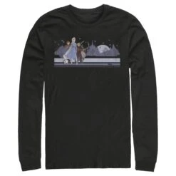 Travel across the enchanted lands into the unknown with this Disney Frozen 2 Winter Travelers Men’s Long Sleeve T-Shirt! Elsa, Anna, Kristoff, Olaf, and Sven are featured with Arendelle in the distance during their journey north on this adorable design with fun retro stripes.