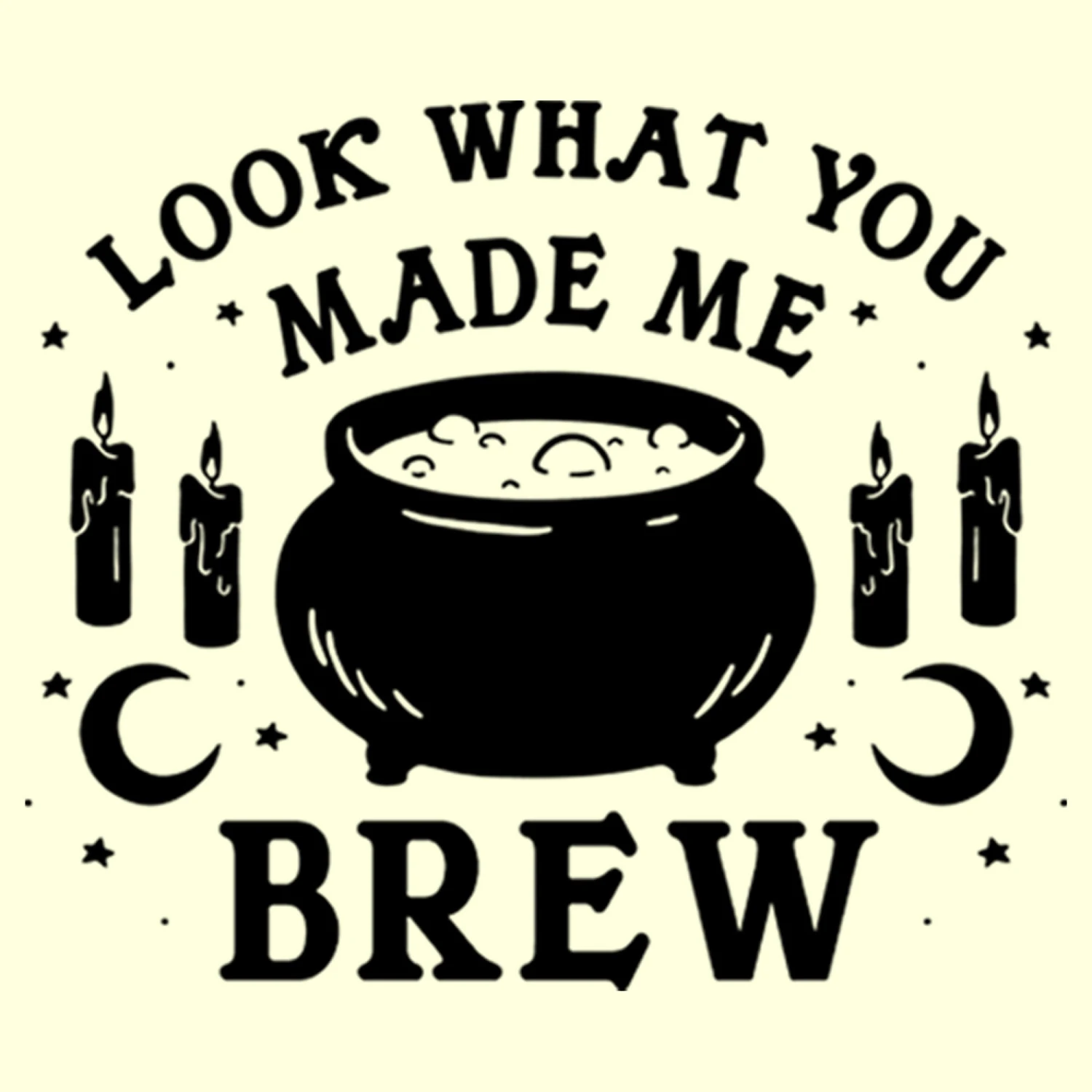 This fun and Halloween Men’s Tee says “Look What You Made Me Brew” along with a bubbling cauldron, candles, and crescent moons.