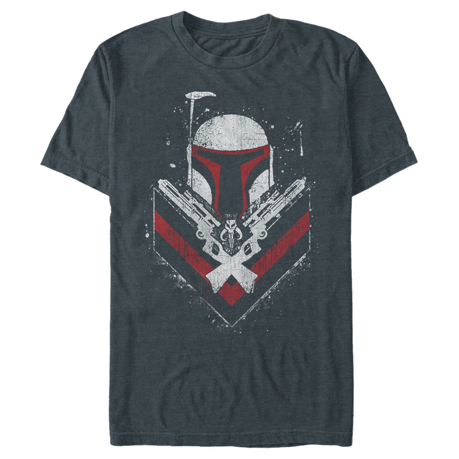 The Star Wars Boba Fett No Threats Only Promises Men’s T-Shirt features an epic design worthy of the best bounty hunter in the galaxy. This awesome men’s shirt shows off Boba Fett’s helmet and two crossed blasters across the front.