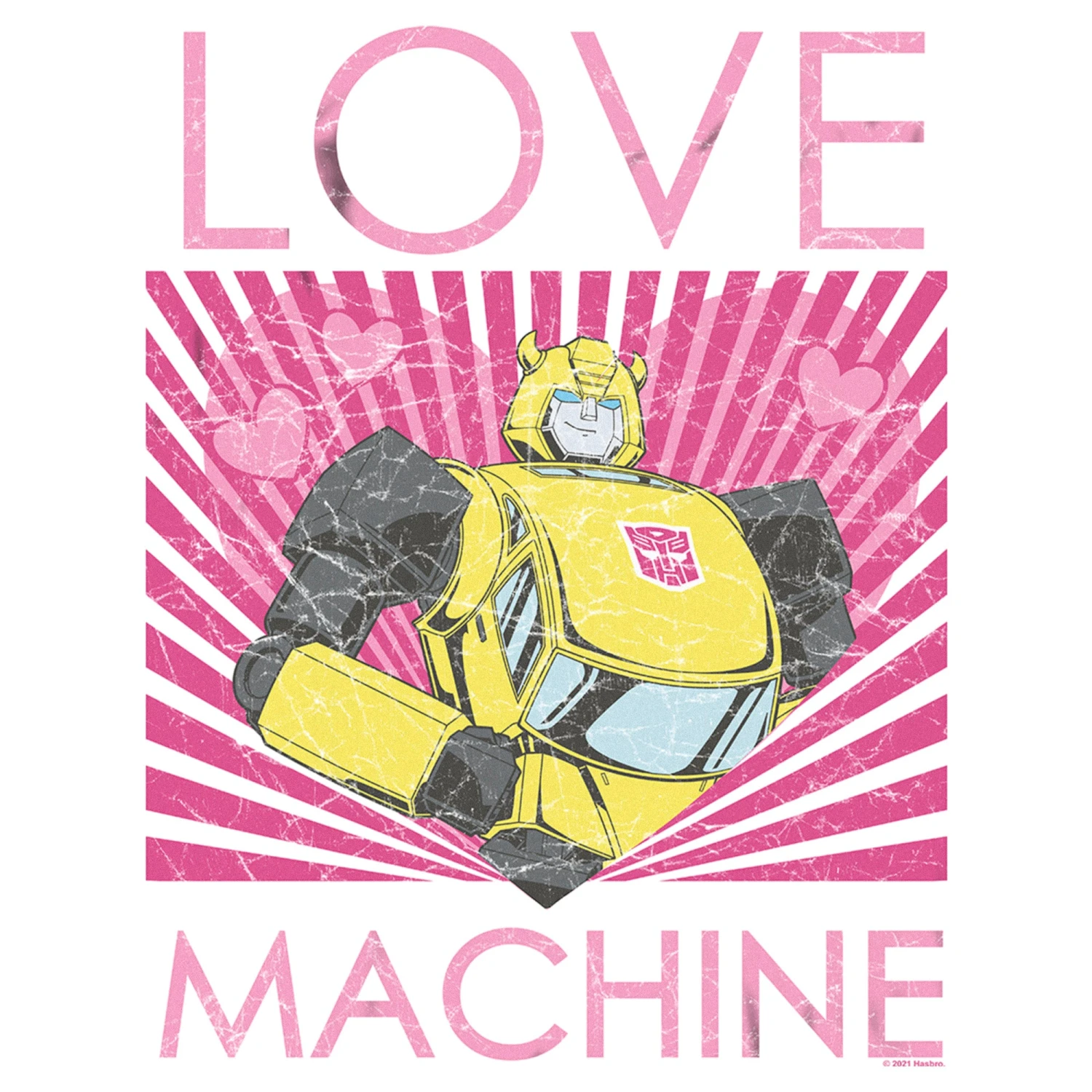 Get in the Valentine’s Day mood with this officially licensed Men’s White Hasbro Transformers Love Machine Tee! Featuring the iconic Bumblebee with little hearts around him and the words “Love Machine,” you are sure to attract all the Transformers fans and maybe even snag a cute Valentine! Dress in style this season with this new graphic tee!