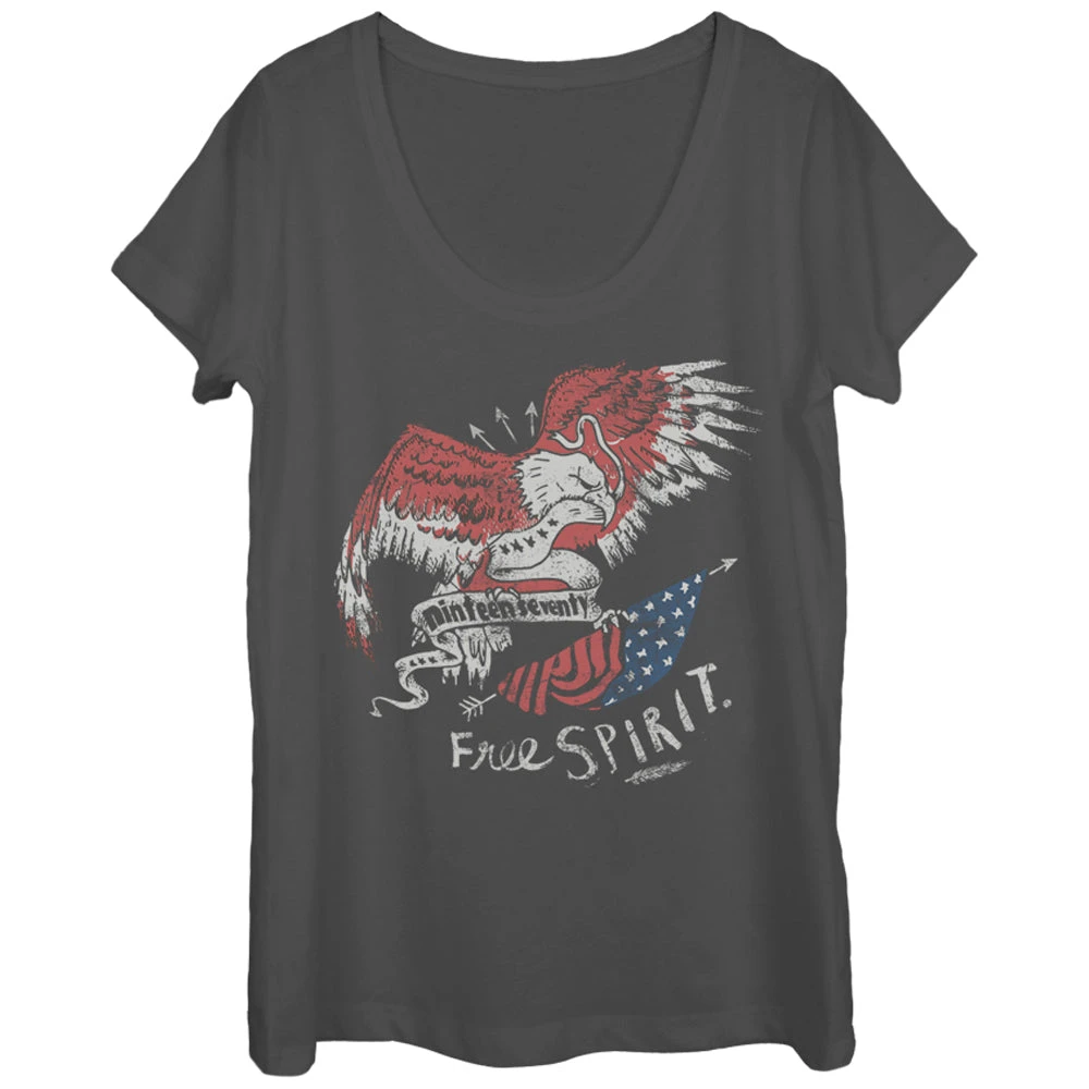 Shop the Lost Gods 4th of July Free Spirit Charcoal Gray T-Shirt. An eagle, American flag, and “nineteen seventy Free Spirit” are printed on the front of this shirt.