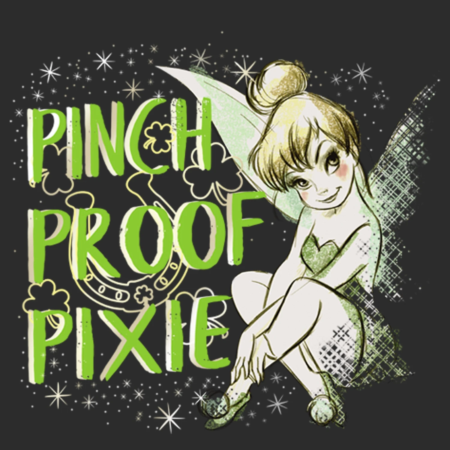 - This design features Tinkerbell sitting cutely with the words “Pinch Proof Pixie” next to her!
