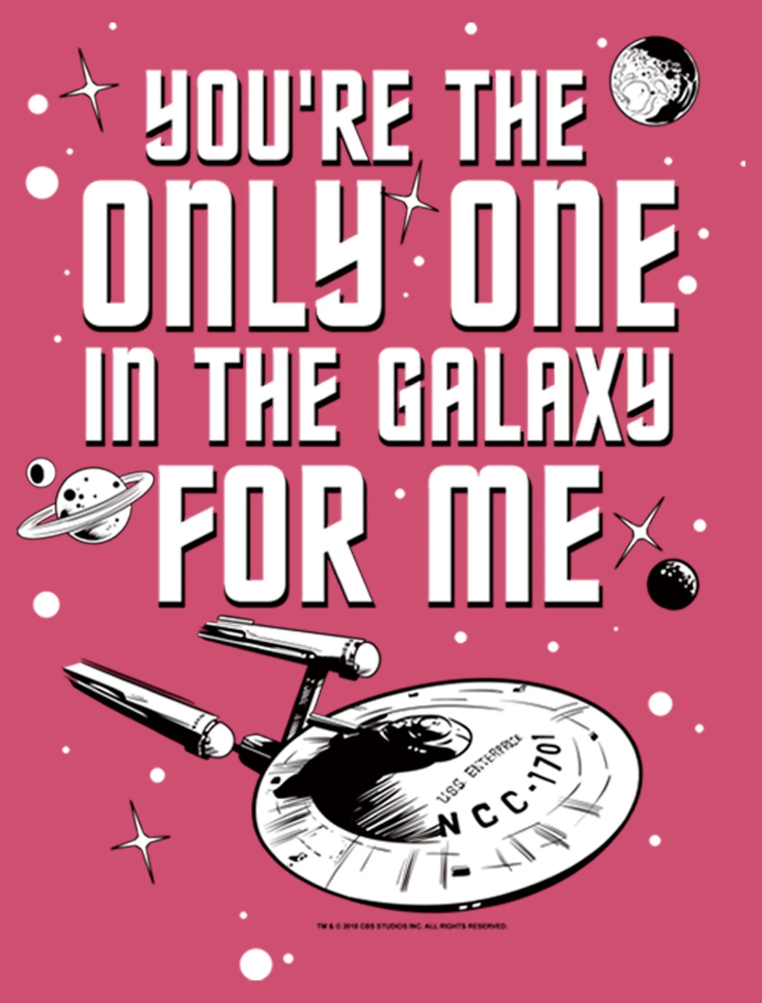 - This design features the words “You’re the only one in the galaxy for me” and the U.S.S. Enterprise!
