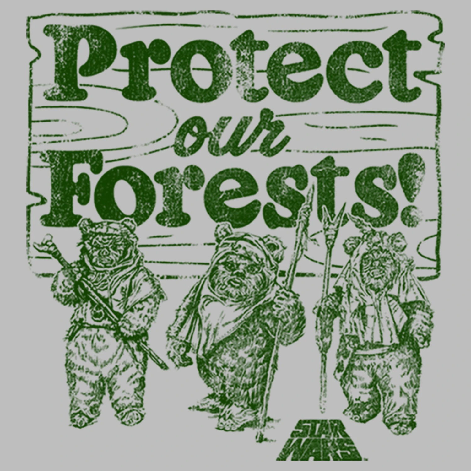Don’t let the Empire destroy the forests of Endor! Stand up to Stormtroopers with the Star Wars Ewok Protect Our Forests Heather Gray T-Shirt. A vintage-style distressed green print reads “Protect Our Forests” above three Ewoks and the Star Wars logo printed on the front of this awesome Ewok shirt.